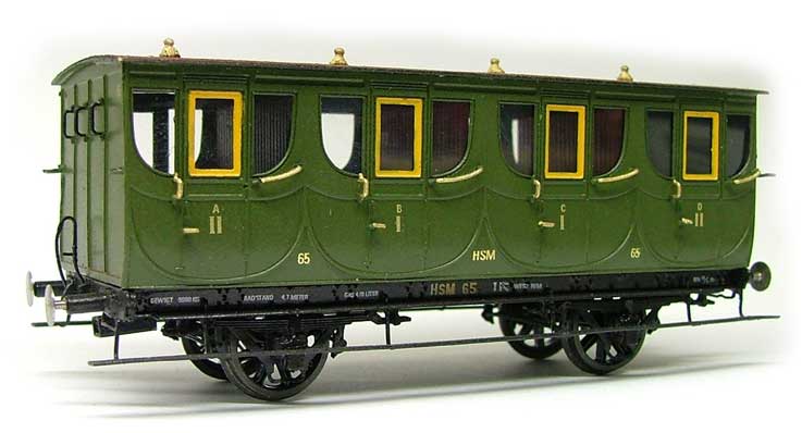 Veertig rijtuigen van dit type werden tussen 1866 en 1872 gebouwd door de HSM in haar eigen werkplaats te Haarlem. In 1919 werden de toen nog resterende 20 rijtuigen "verbouwd" tot 3e klasse. Verbouwen hield in dat het luxe interieur eruit werd gehaald en werd vervangen door houten banken met latjes. Wel bleef men wat extra luxe houden door de grotere beenruimte, de coupé lengte kon namelijk niet gewijzigd worden. De NS stelde ze vanaf begin jaren dertig langzaam aan buiten dienst. De laatste AB's van dit type (alle als C's) deden dienst tot 1931. Serie: HSM AB 57-98, na 1919 3e klasse, na 1921 NS C 2040-2060. Gelimiteerde oplage van 20 stuks totaal, nog beperkt leverbaar.