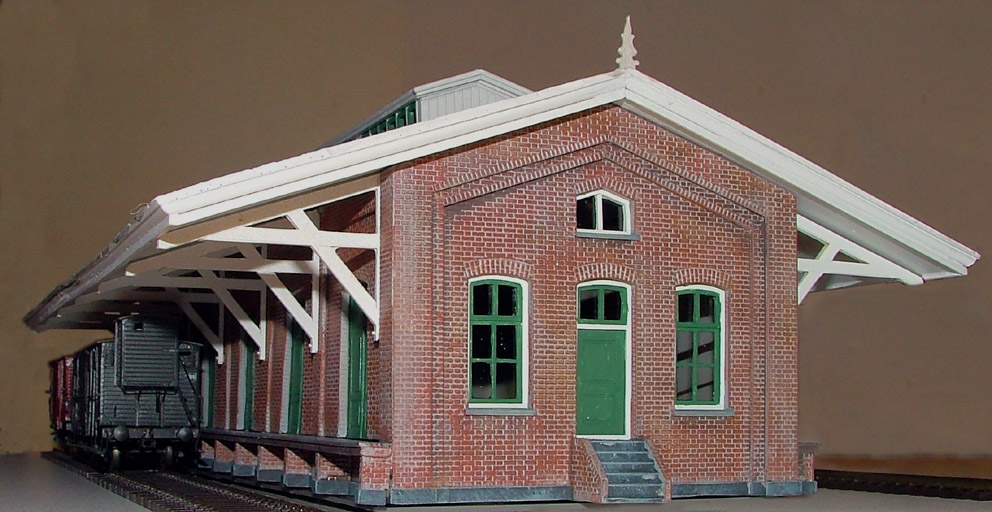 Dit model is geheel opgebouwd in kunststof. De kit bevat alle onderdelen om de afgebeelde loods te bouwen. U kunt daarbij zelf kiezen voor het wel of niet aanbrengen van de lichtkap. Er worden extra onderdelen bijgeleverd zodat u ook kunt varieeren in de indeling van de zijwand (blinde vakken, deuren, kantoor met raam). Verder zijn er zijmuren voor de bijbehorende kop- zijlanding meegeleverd en transfers met de stationsnaam zoals deze vanaf de jaren 30 op de kopgevels werden geschilderd. Daarbij ook een aantal extra letters zodat u zelf een stationsnaam kunt samenstellen.