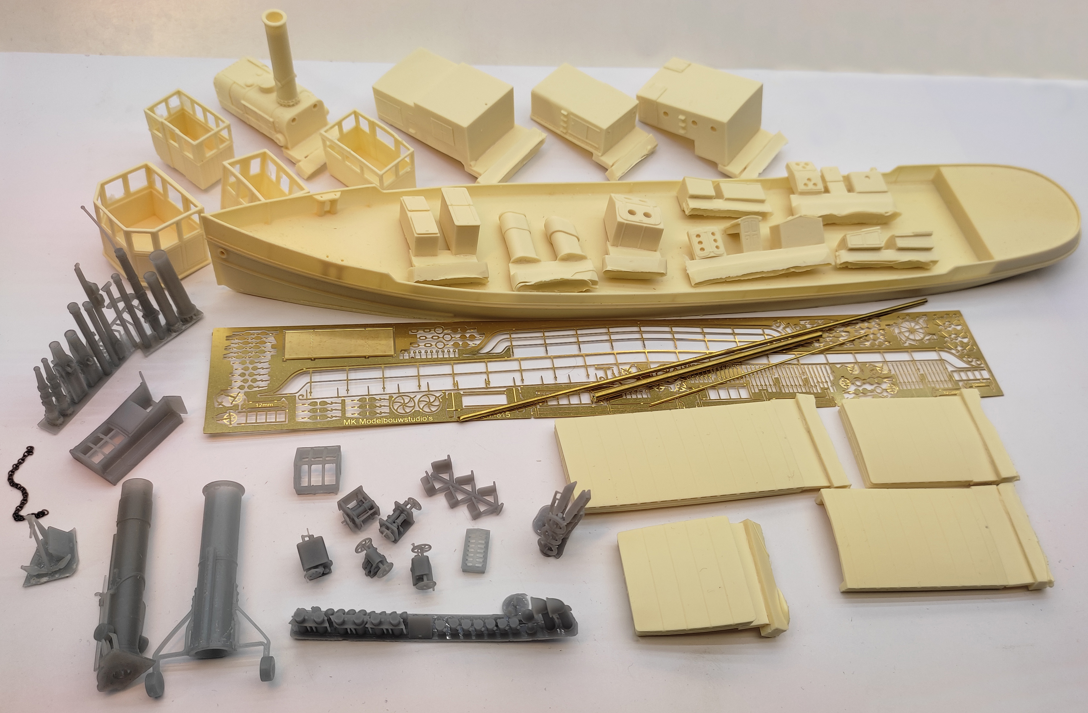 stuurhutten, machinekamers, ruimen enz. (zie de foto van de bouwset). Hierdoor