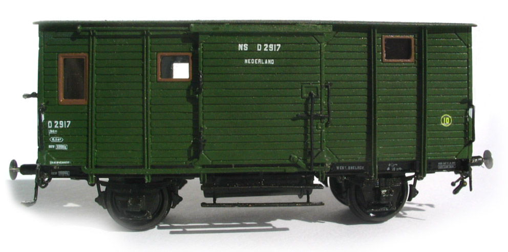 Deze bagagewagens werden door NS omgebouwd rond 1930 uit een serie gesloten
