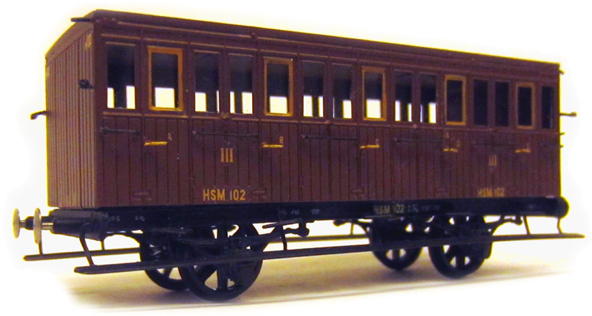 Set HSM 02 bevat het afgebeelde postrijtuig met tonnendak.